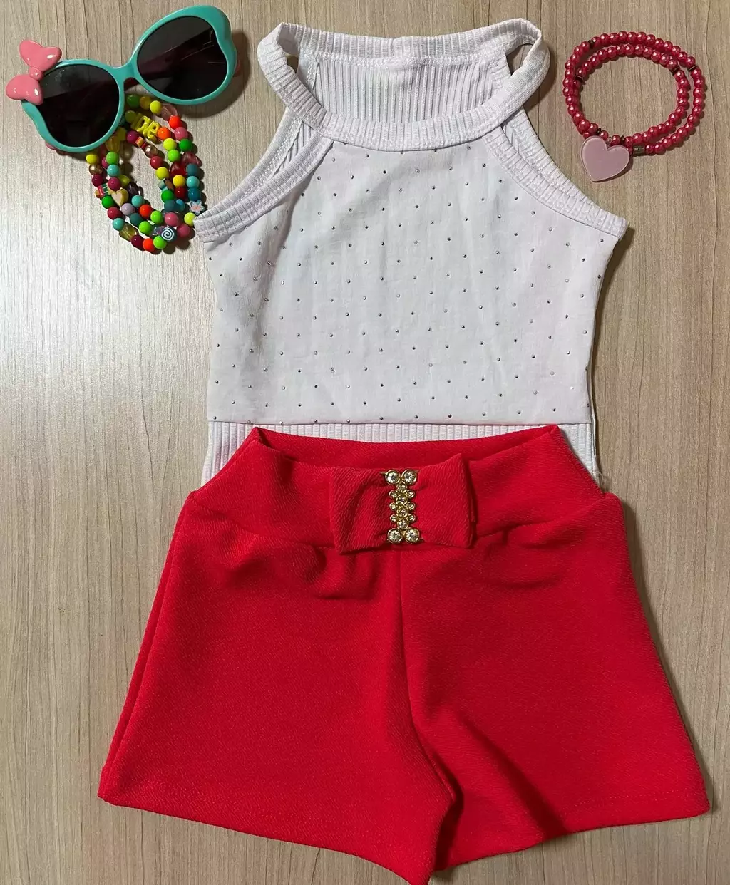 Se você está procurando um short que deixe sua pequena linda e confortável, esse é a escolha perfeita! Com um design moderno e cheio de estilo, esse short é perfeito para quem quer arrasar no look. Confeccionado em malha 92% poliéster e 8% elastano, esse short é super confortável e tem um caimento perfeito no corpo da sua princesa. O detalhe em pedras no cós o torna ainda mais charmoso. Esse short é versátil e pode ser usado em diversas ocasiões, como festas, passeios e até mesmo no dia a dia. Não perca tempo e adquira já para deixar sua pequena ainda mais linda e estilosa! Tamanho P ( 1 a 2 anos), M (3 a 5 anos) e G (6 a 8 anos).